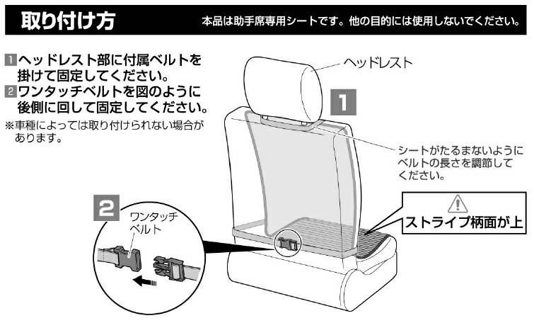 付属ベルトをヘッドレストとシートに固定し、助手席で使えるサイズのドライブシートです。